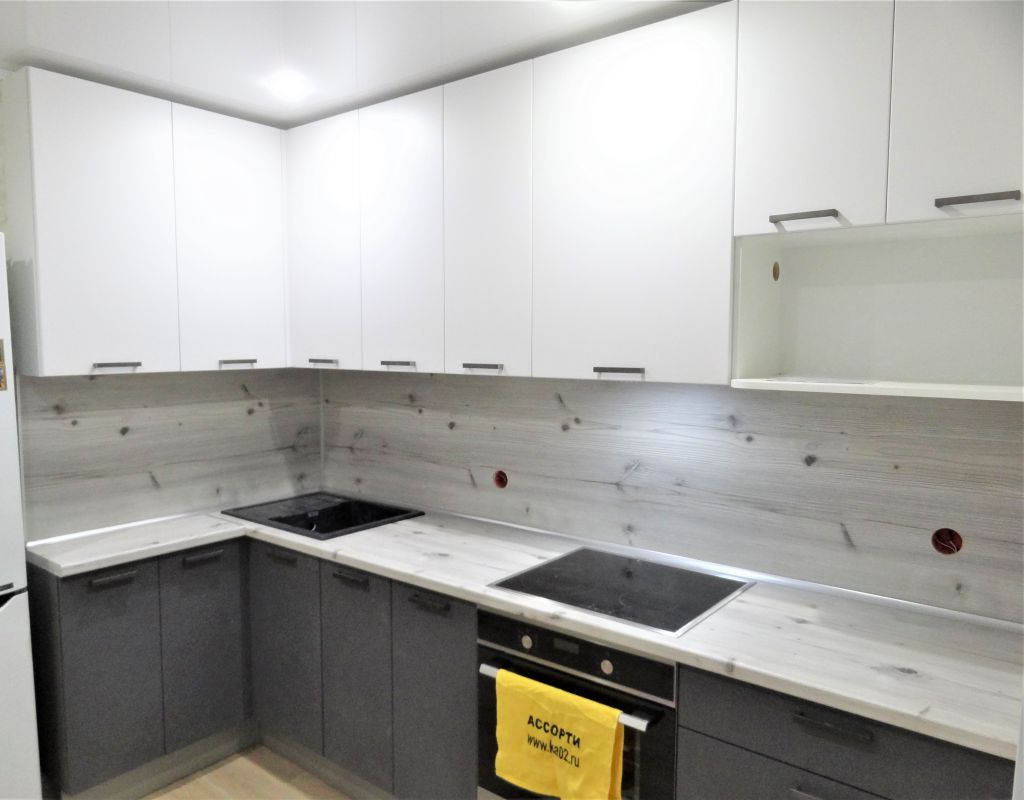 Кухонный гарнитур изготовлен под заказ и установлен в г. Уфа по ул. Столярова дом 4б. Фасады кухни мдф в пвх , столешница кухни влагостойкая 38мм, фартук кухни в цвет столешницы, фурнитура кухни австрийская Блюм с доводчиками, поддон гигиенический в корпусе мойки, коврики влагозащитные в ящиках, евро сушилка, лоток под столовые приборы, цоколь плинтус, ручки, мойка каменная в подарок. Цена кухни с установкой от 20000 рублей за п.м. Срок изготовления кухни на заказ 10 дней. Возможна рассрочка на 12 мес. без переплаты и без первого взноса, или в кредит на 3 года без первого взноса.