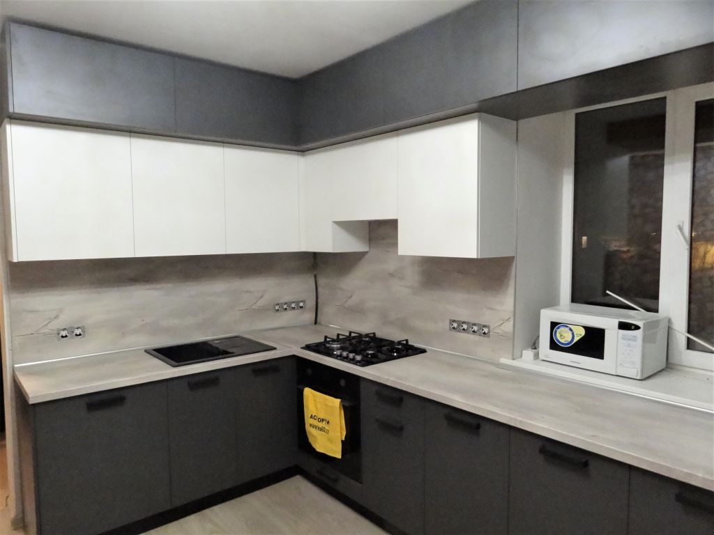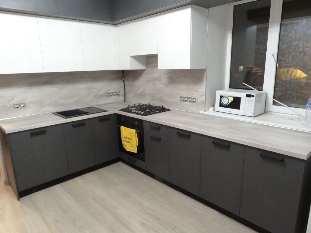 Кухонный гарнитур изготовлен под заказ и установлен в п. Жуково по ул. Строителей. Фасады кухни пластик Еггер(Австрия) , столешница кухни влагостойкая 38мм, фартук кухни в цвет столешницы, фурнитура кухни австрийская Блюм с доводчиками, поддон гигиенический в корпусе мойки, коврики влагозащитные в ящиках, евро сушилка, лоток под столовые приборы, цоколь плинтус, ручки, мойка каменная в подарок. Цена кухни с установкой от 20000 рублей за п.м. Срок изготовления кухни на заказ 10 дней. Возможна рассрочка на 12 мес. без переплаты и без первого взноса, или в кредит на 3 года без первого взноса.
