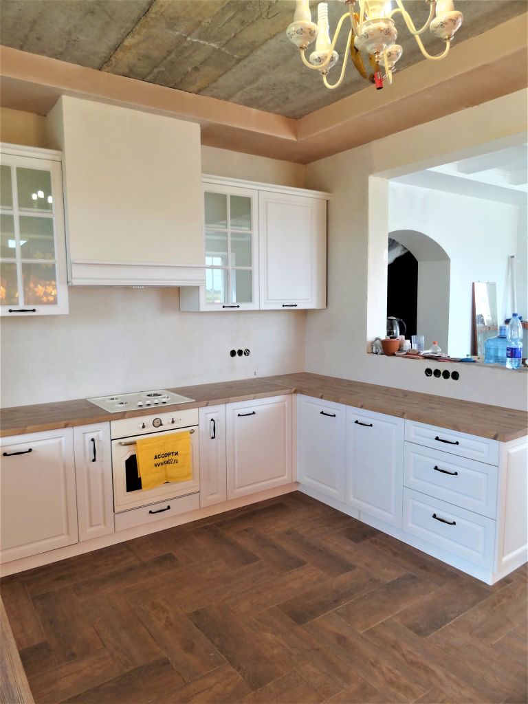 Кухонный гарнитур изготовлен под заказ и установлен в г. Уфа по ул. дом Фасады кухни мдф в пвх , столешница кухни влагостойкая 38мм, фартук кухни плитка, фурнитура кухни австрийская Блюм с доводчиками, поддон гигиенический в корпусе мойки, коврики влагозащитные в ящиках и в нише под СВЧ, евро сушилка, лоток под столовые приборы, цоколь плинтус, ручки, мойка каменная в подарок. Цена кухни с установкой рублей. Срок изготовления кухни на заказ 10 дней. Возможна рассрочка на 12 мес.без первого взноса, без переплаты, или в кредит на 3 года без первого взноса.