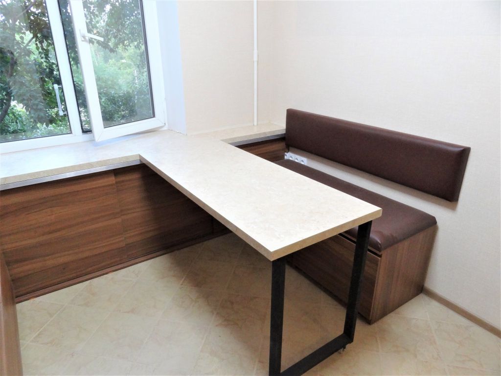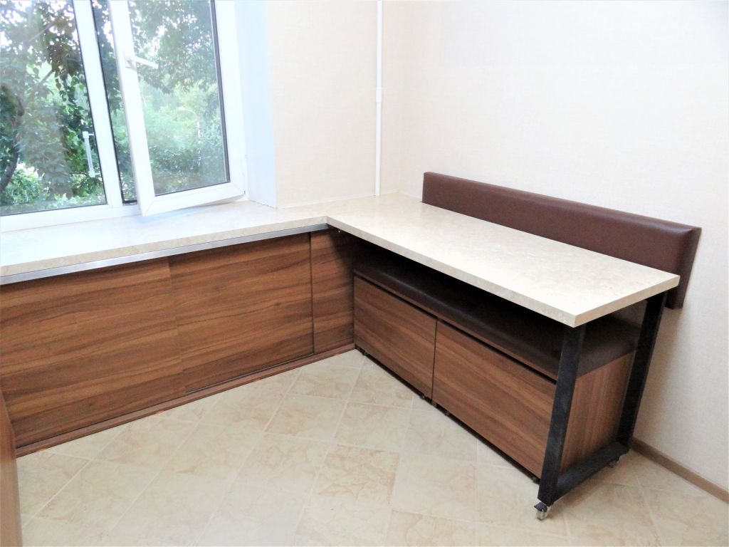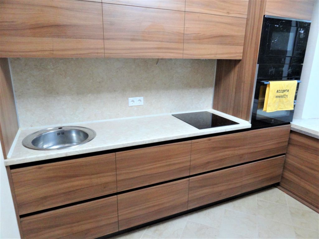 Кухонный гарнитур изготовлен под заказ и установлен в г. Уфа. Фасады кухни пластик Еггер , столешница кухни влагостойкая 38мм Еггер, фартук кухни в цвет столешницы, фурнитура кухни австрийская Блюм с доводчиками, поддон гигиенический в корпусе мойки, коврики влагозащитные в ящиках, евро сушилка, лоток под столовые приборы, цоколь плинтус, ручки. В этом проекте барная столешница катается на напрвляющей и роликах вправо и влево. Под скамейкой корпуса на колесиках, тоже выкатные. Под подоконником фасады раздвижные. Цена кухни с установкой от 20000 рублей за п.м. Срок изготовления кухни на заказ от 10 дней. Возможна рассрочка на 12 мес. без переплаты и без первого взноса, или в кредит на 3 года без первого взноса.