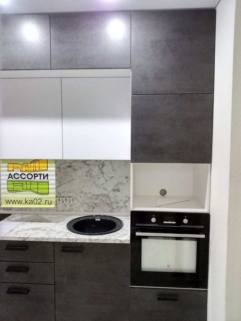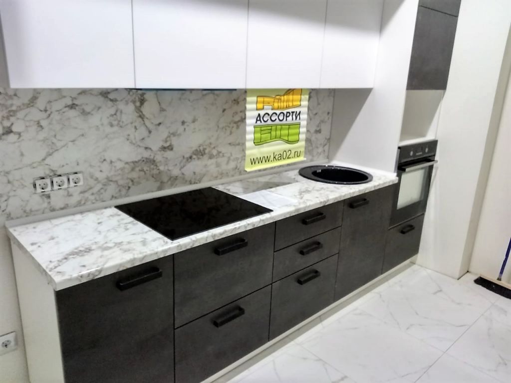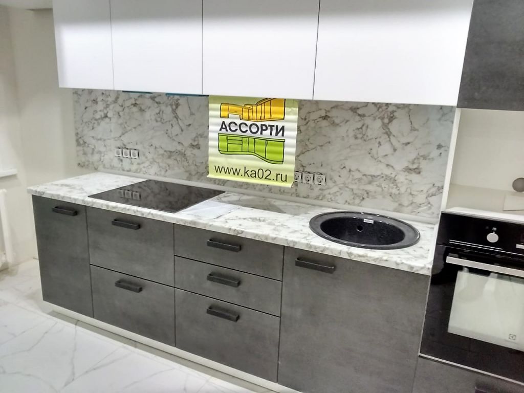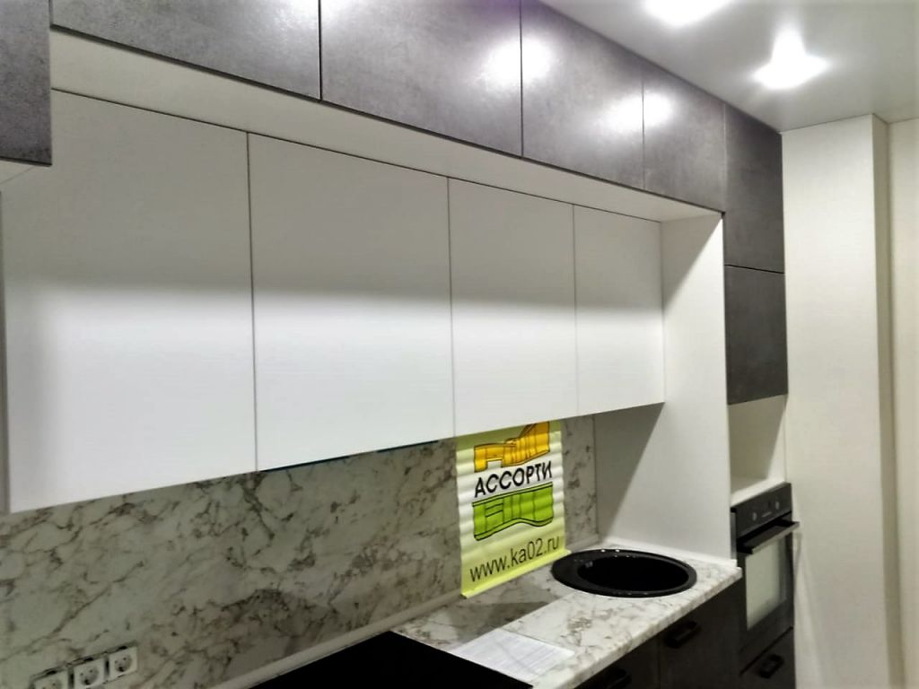 Кухня на заказ в Уфе изготовлена и установлена по ул. Российская д.25. Кухня в стиле "Лофт", конструкция кухни с антресолями, спокойные оттенки фасадов, столешница и фартук под камень, фурнитура австрийская Блюм. Срок изготовления этой кухни составил 24 дня. Можно заказать кухню в рассрочку или кредит.
