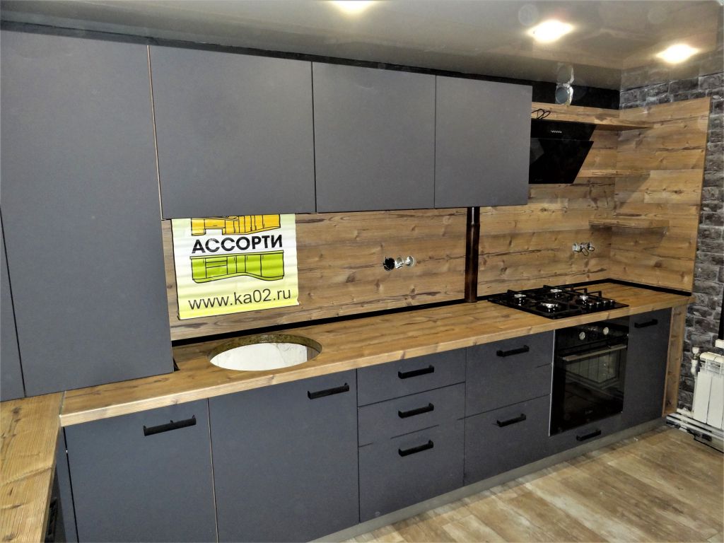 Кухонный гарнитур изготовлен под заказ и установлен в г. Уфа по ул. Шепетовская в Нижегородке. Фасады кухни мдф в пвх , столешница кухни влагостойкая 38мм, фартук кухни в цвет столешницы, фурнитура кухни австрийская Блюм с доводчиками, поддон гигиенический в корпусе мойки, коврики влагозащитные в ящиках, евро сушилка, лоток под столовые приборы, цоколь плинтус, ручки, мойка каменная в подарок. Цена кухни с установкой от 20000 рублей за п.м. Срок изготовления кухни на заказ 10 дней. Возможна рассрочка на 12 мес. без переплаты, или в кредит на 3 года без первого взноса.