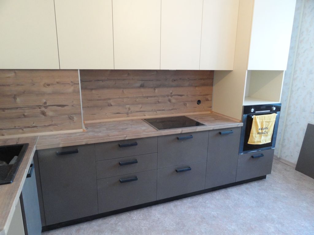 Кухонный гарнитур изготовлен под заказ и установлен в г. Уфа по ул. Российская дом 47/3. Фасады кухни пластик Еггер(Австрия) , столешница кухни Еггер(Австрия) влагостойкая 38мм, фартук кухни Еггер(Австрия) в цвет столешницы, фурнитура кухни австрийская Блюм с доводчиками, поддон гигиенический в корпусе мойки, коврики влагозащитные в ящиках, евро сушилка, лоток под столовые приборы, цоколь плинтус, ручки, мойка каменная в подарок. Цена кухни с установкой от 20000 рублей за п.м. Срок изготовления кухни на заказ 10 дней. Возможна рассрочка на 12 мес. без переплаты и без первого взноса, или в кредит на 3 года без первого взноса.