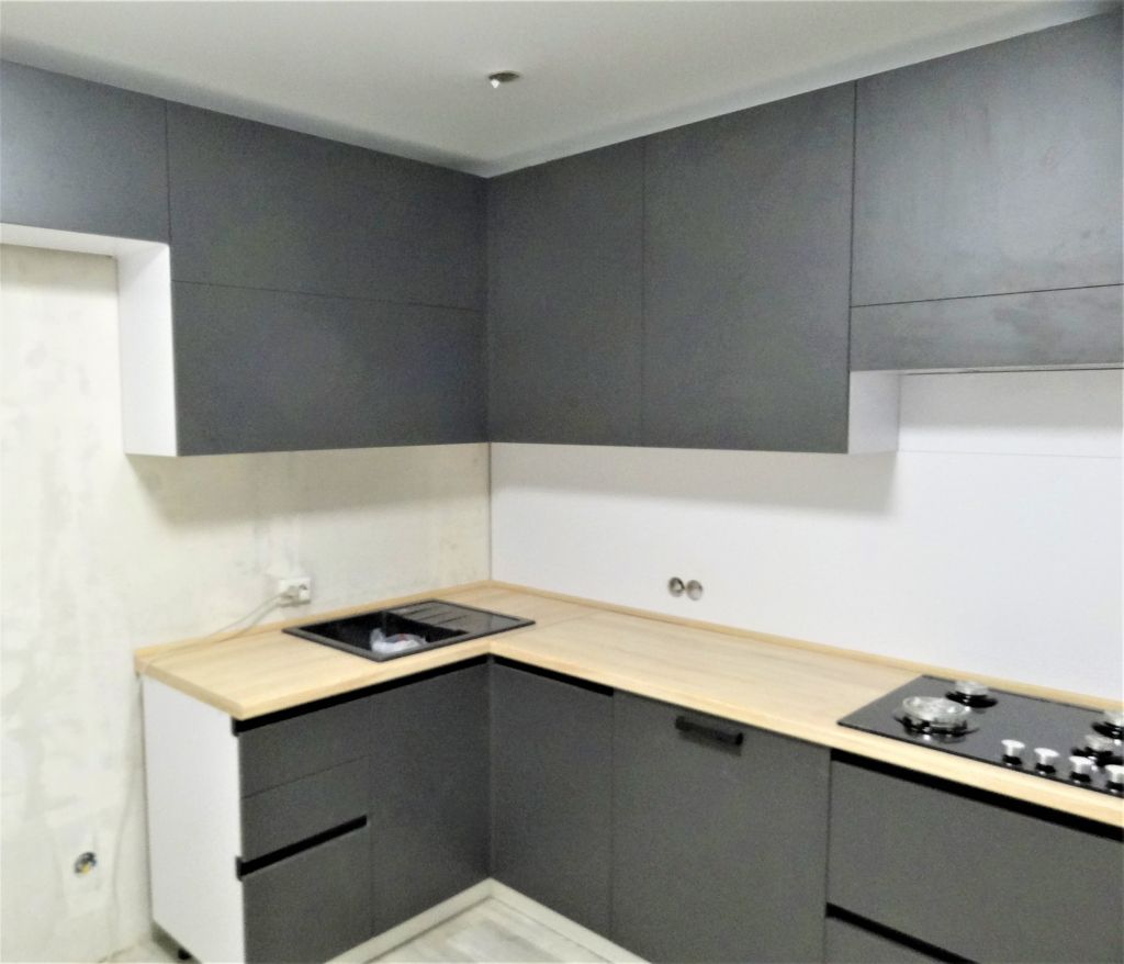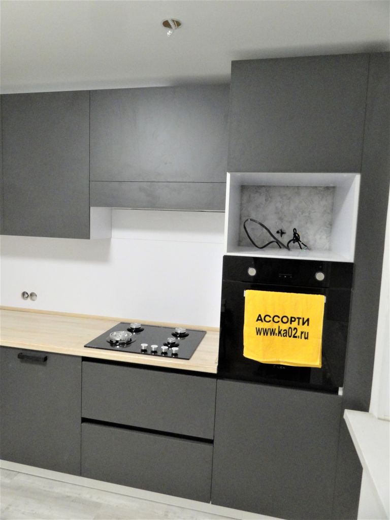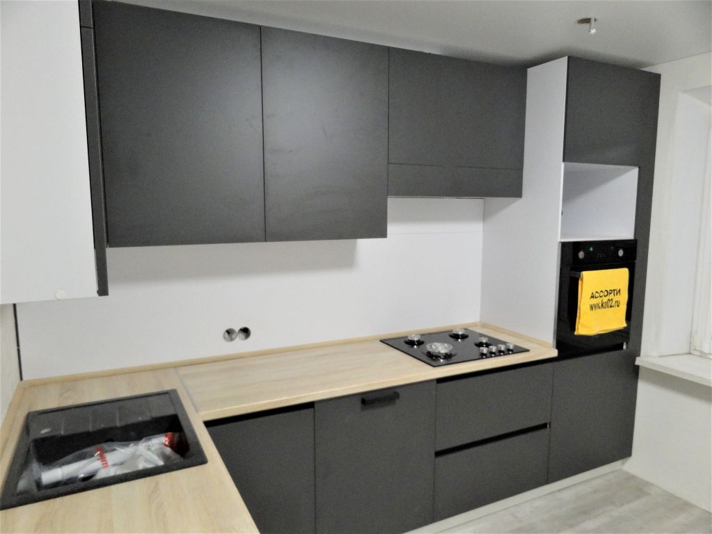 Кухонный гарнитур изготовлен под заказ и установлен в г. Уфа по ул.Кувыкина дом 29. Фасады кухни мдф в пвх , столешница кухни влагостойкая 38мм, фартук кухни плитка, фурнитура кухни австрийская Блюм с доводчиками, поддон гигиенический в корпусе мойки, коврики влагозащитные в ящиках и в нише под СВЧ, евро сушилка, лоток под столовые приборы, цоколь плинтус, ручки, мойка каменная в подарок. Цена кухни с установкой рублей. Срок изготовления кухни на заказ 10 дней. Возможна рассрочка на 12 мес.без первого взноса, без переплаты, или в кредит на 3 года без первого взноса.
