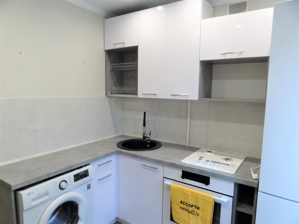 Кухонный гарнитур изготовлен под заказ и установлен в г. Уфа по ул. дом Фасады кухни мдф в пвх , столешница кухни влагостойкая 38мм, фартук кухни плитка, фурнитура кухни австрийская Блюм с доводчиками, поддон гигиенический в корпусе мойки, коврики влагозащитные в ящиках и в нише под СВЧ, евро сушилка, лоток под столовые приборы, цоколь плинтус, ручки, мойка каменная в подарок. Цена кухни с установкой рублей. Срок изготовления кухни на заказ 10 дней. Возможна рассрочка на 12 мес.без первого взноса, без переплаты, или в кредит на 3 года без первого взноса.